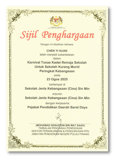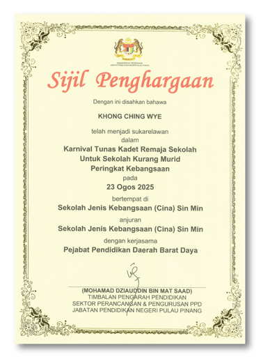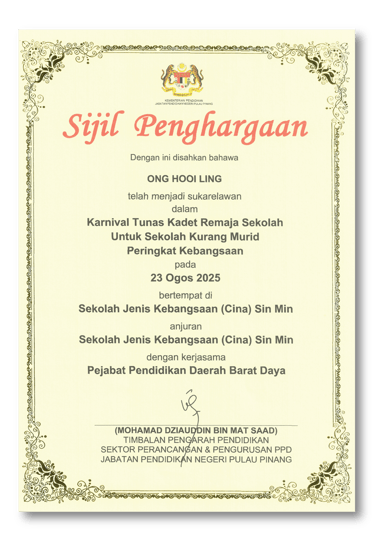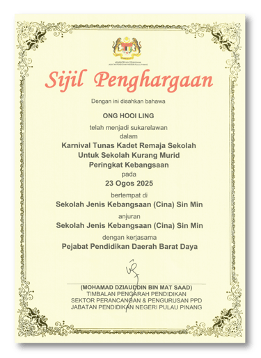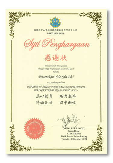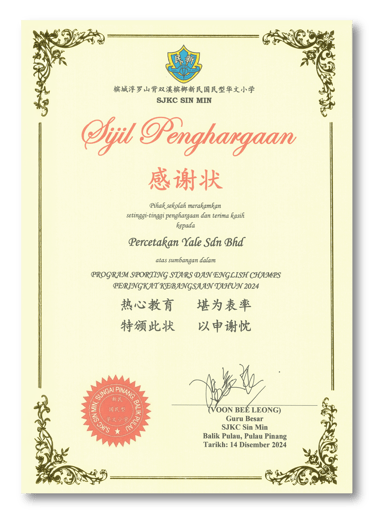 Appreciation by SJKC Sin Min for our sponsorship in photoshooting