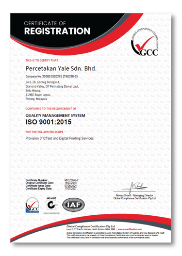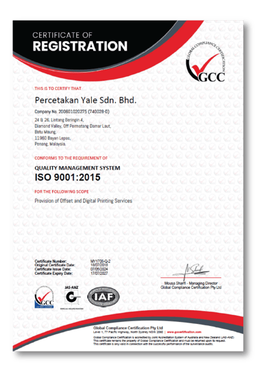 Yale Printers Malaysia (Percetakan Yale Malaysia) is a one-stop, full-service commercial printing hub grown out of a passion and commitment to offering truly high quality printing products to customers, big or small.